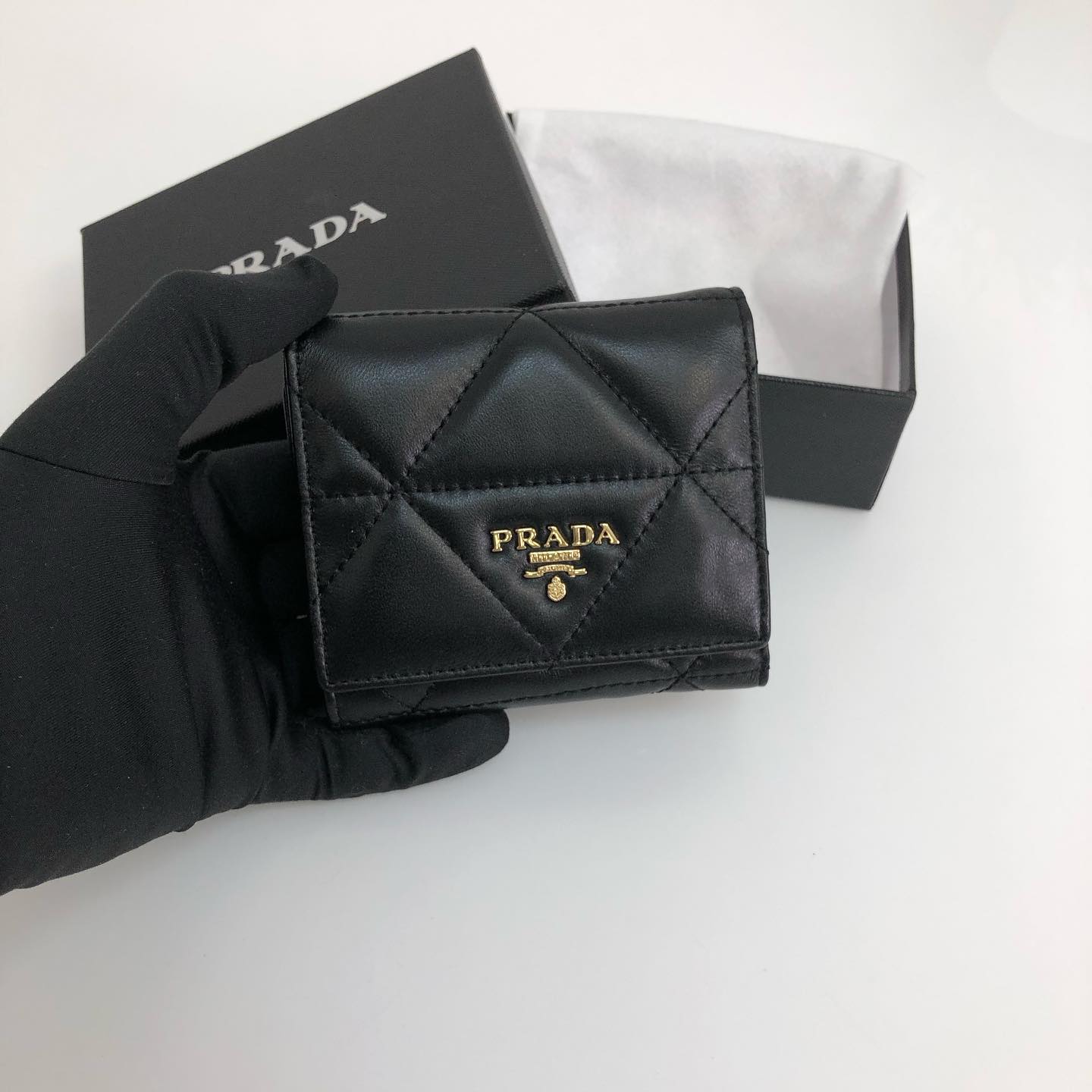 Элегантный кошелёк Prada LUX-40425 выполнен в классическом чёрном цвете и отличается изысканным стеганым дизайном. Этот аксессуар от известного бренда Prada идеально подойдёт для хранения банковских карт, наличных и других мелочей. Его компактный размер делает его удобным для ношения в сумочке или даже в кармане.