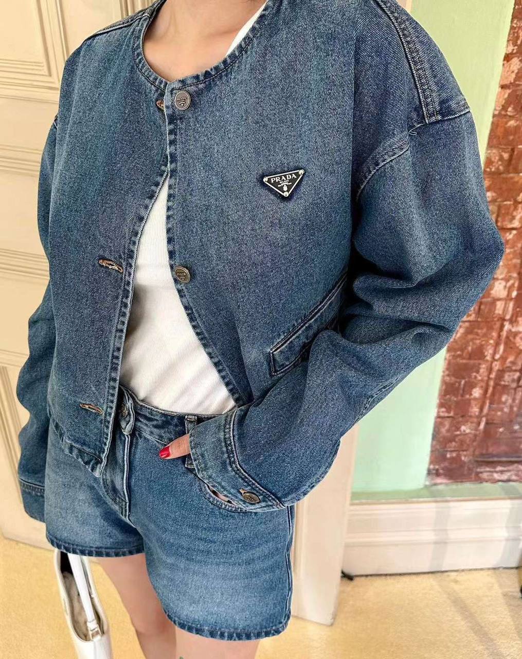 Костюм Prada LUX-87750 – это воплощение современной элегантности и непринужденного стиля. Костюм состоит из короткой куртки и шорт, выполненных из денима. Этот костюм идеально подходит для создания стильных повседневных образов.