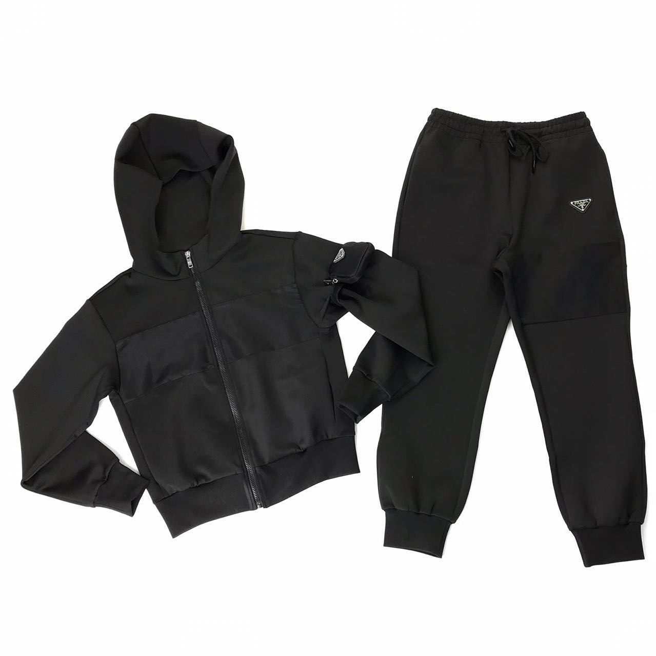 Спортивный костюм Prada LUX-36032 — это элегантный выбор для тех, кто ценит стиль и комфорт. Комплект выполнен в минималистичном черном цвете, что делает его универсальным и легко сочетаемым с различной одеждой. Костюм идеально подходит для занятий спортом, активного отдыха или повседневного ношения.