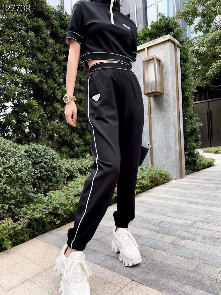 Prada костюм спортивный LUX-65327 представляет собой элегантный и стильный спортивный костюм, выполненный в современном дизайне. Комплект состоит из укороченной кофты с короткими рукавами и брюк. Костюм декорирован контрастной белой окантовкой по краю изделия и вдоль боковых швов брюк, добавляя изделию динамичности. Небольшой фирменный треугольный логотип Prada на брюках подчеркивает статусность бренда.