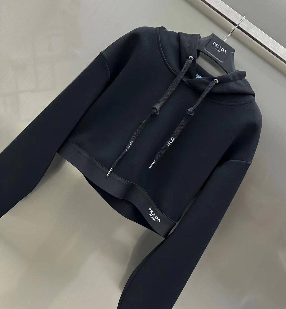 Костюм спортивный Prada LUX-96809 представляет собой стильный и комфортный спортивный костюм. Состоит из укороченного худи с капюшоном и спортивных брюк. Комплект выполнен в черном цвете, имеет минималистичный дизайн с логотипом бренда. Идеально подходит для повседневной носки, занятий спортом и создания модных образов в стиле casual.
