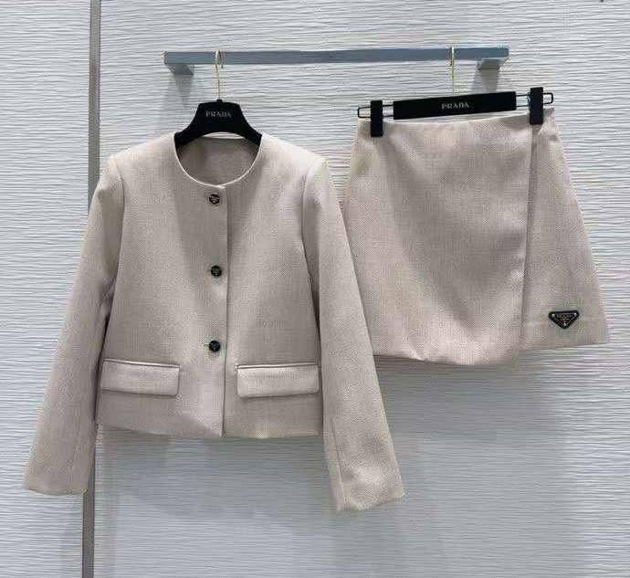 Костюм женский Prada LUX-109734 — это элегантный ансамбль от известного бренда, выполненный в классическом стиле. Комплект состоит из укороченного жакета и юбки, выдержанных в нейтральной цветовой гамме. Данный костюм подойдет для создания стильных образов в различных ситуациях.
