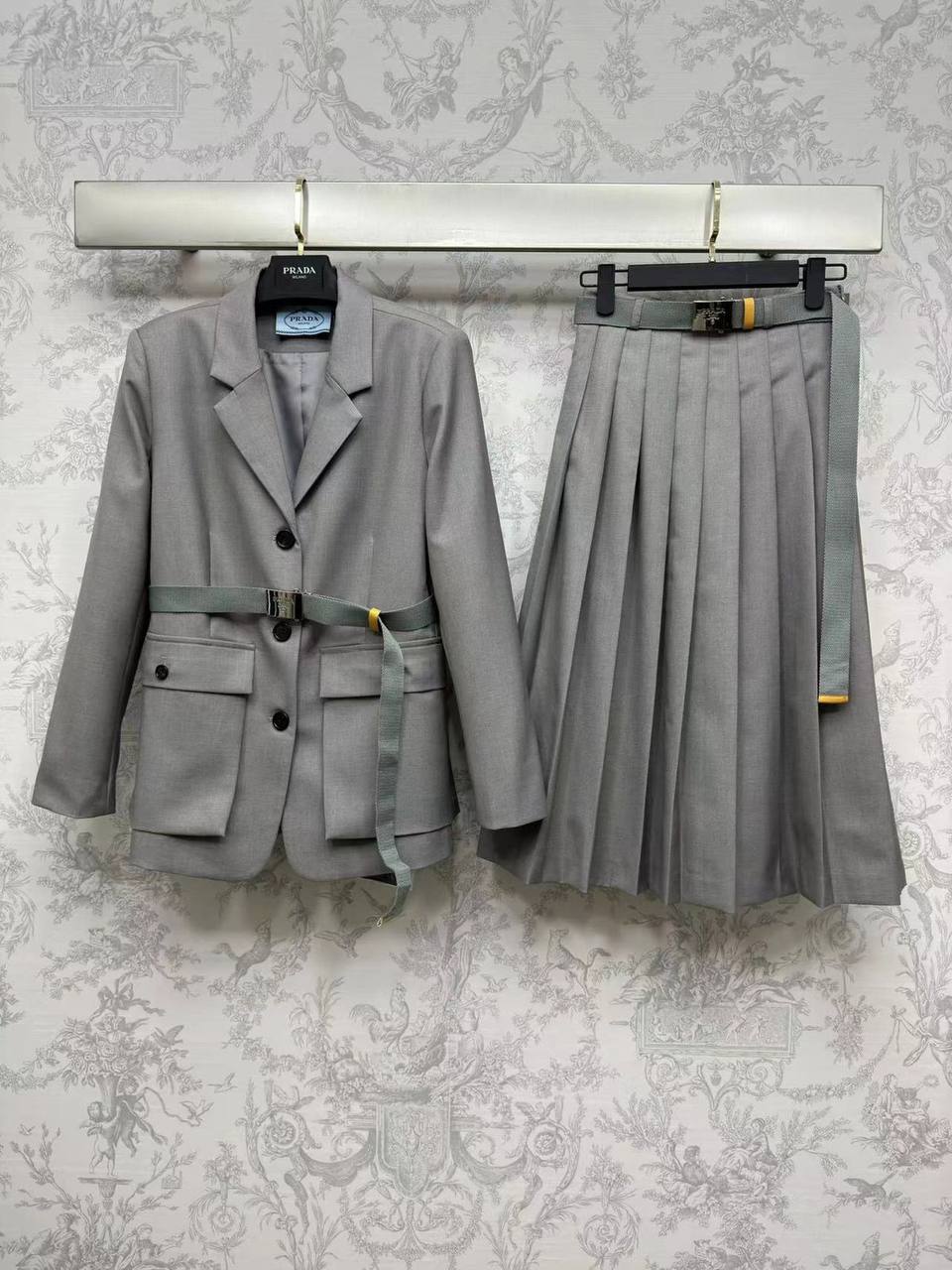 Костюм женский Prada LUX-104039 представляет собой элегантный деловой ансамбль в классическом стиле. Серый костюм включает в себя жакет и юбку. Комплект отличается сдержанной текстурой и подходит для создания стильных и утонченных образов.