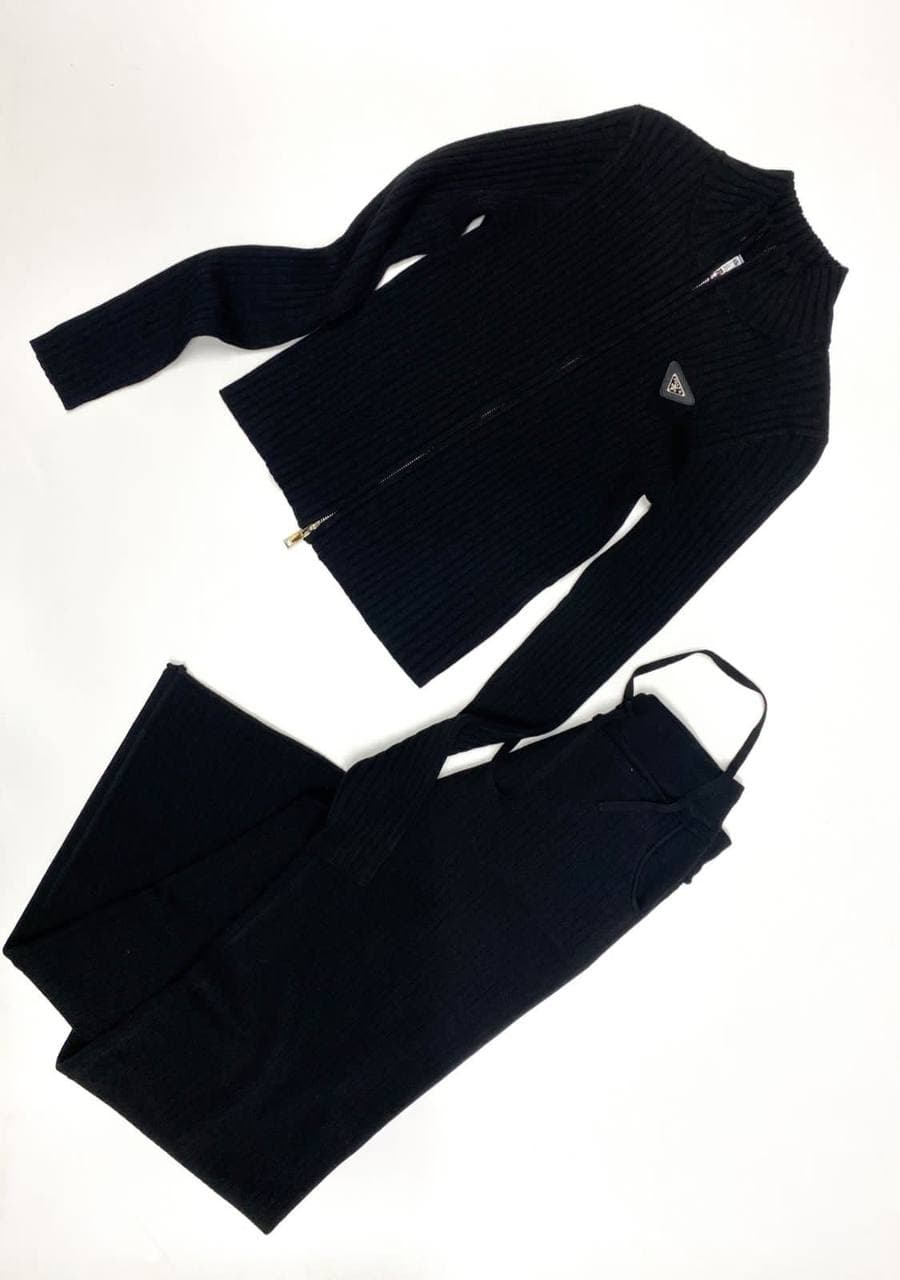 Женский костюм Prada LUX-62043 представляет собой стильный и элегантный комплект, состоящий из кардигана на молнии и брюк. Выполненный в лаконичном черном цвете, этот костюм идеально подойдет для создания утонченных образов в стиле casual или smart casual. Эмблема бренда Prada придает изделию узнаваемость и роскошный вид.