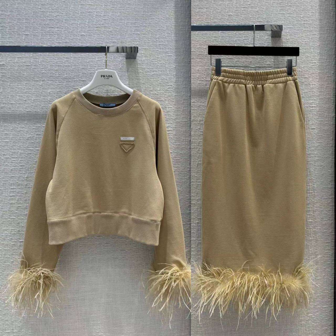 Костюм женский Prada LUX-99656 - это воплощение элегантности и стиля, сочетающее в себе комфорт и изысканность. Костюм состоит из свитшота и юбки, выполненных в песочном оттенке. Он подойдет для создания как повседневных, так и более формальных образов.