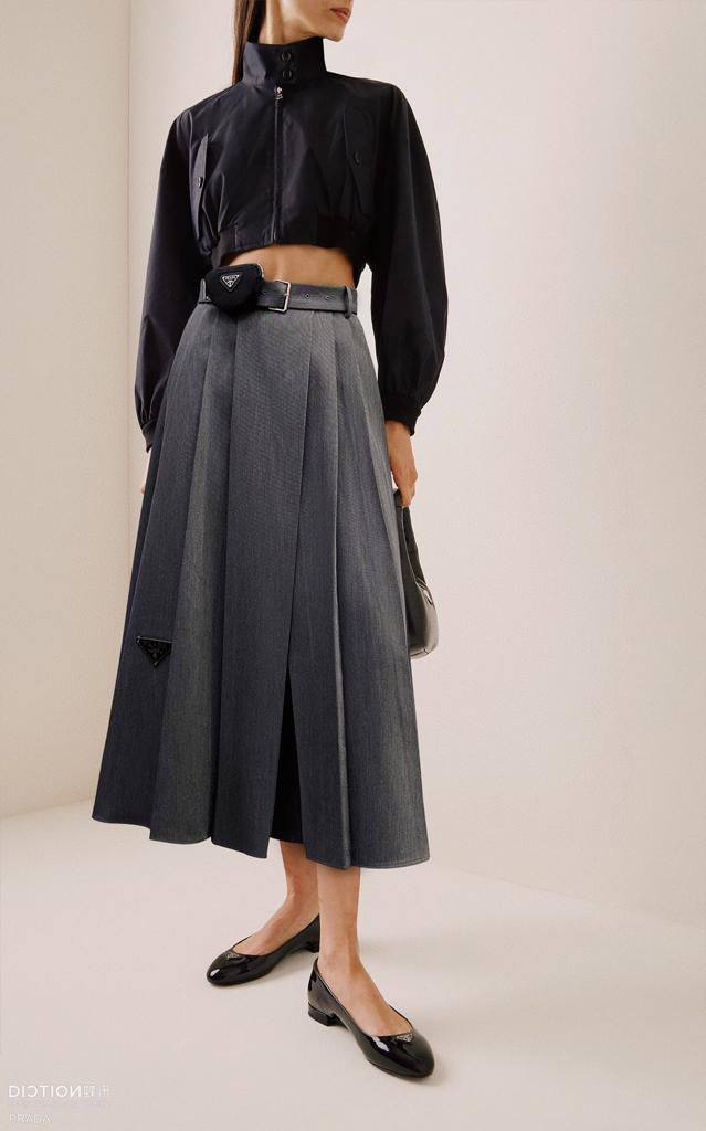 Костюм женский Prada LUX-100895 представляет собой стильный костюм классического кроя. Комплект выполнен в сером цвете, что делает его универсальным для различных образов. Текстура ткани, вероятно, имеет элегантный вид, что подчеркивает изысканный стиль.