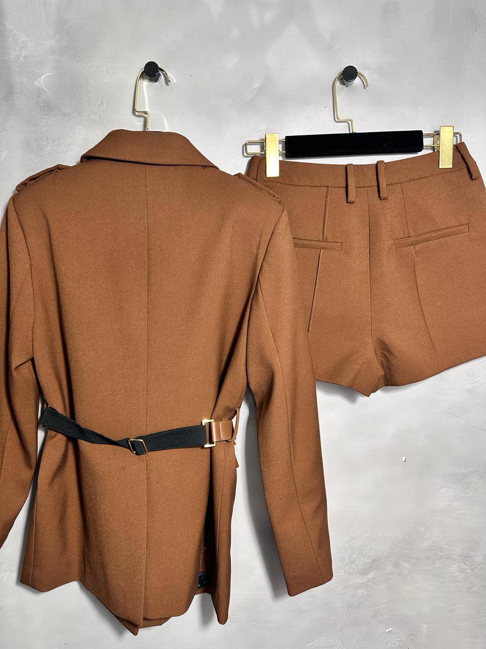 Костюм женский Prada LUX-101948 представляет собой стильный комплект, состоящий из пиджака и шорт. Костюм выполнен в насыщенном коричневом цвете, придающем образу элегантность и утонченность. Идеально подойдет для создания эффектных повседневных и деловых образов.