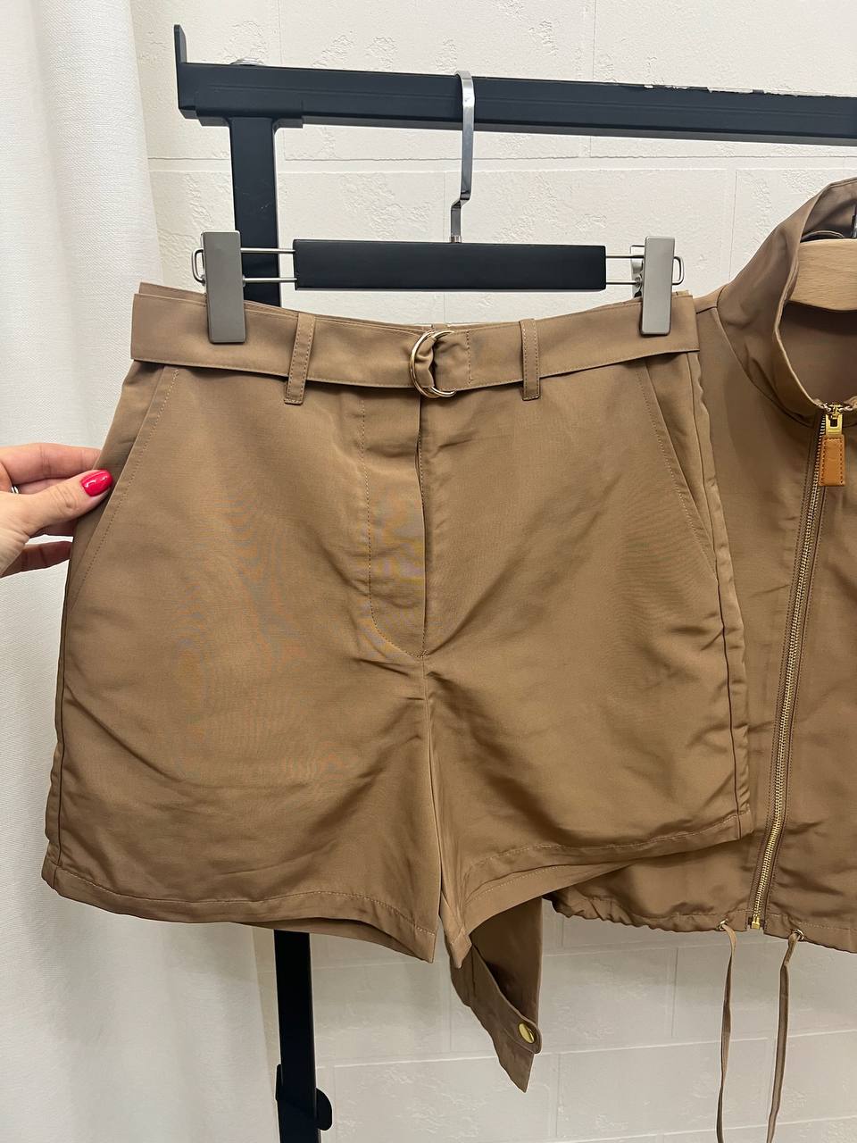 Костюм женский Prada LUX-104087 - это стильный ансамбль, который состоит из куртки-бомбера и юбки. Комплект выполнен в теплом коричневом цвете. Куртка имеет короткий крой, воротник-стойку, застежку-молнию и небольшой карман. Юбка с поясом и пряжкой.