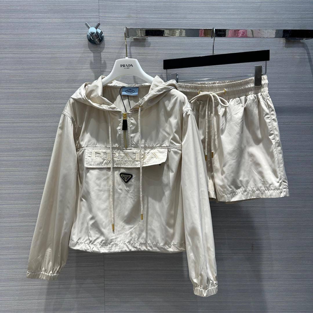 Костюм женский Prada LUX-104463 – это стильный комплект, который сочетает в себе спортивный шик и узнаваемый дизайн Prada. Он выполнен в спокойном кремовом оттенке и имеет легкую текстуру, создавая элегантный и современный образ. Идеально подходит для создания повседневных и спортивных образов.