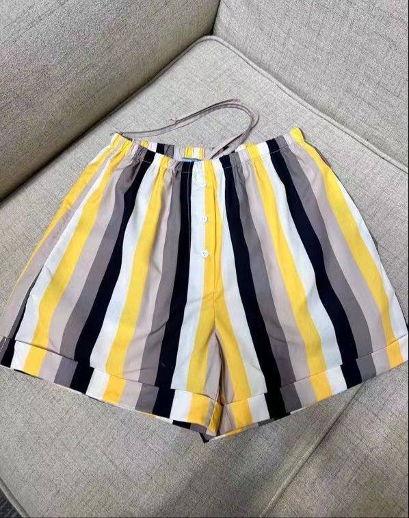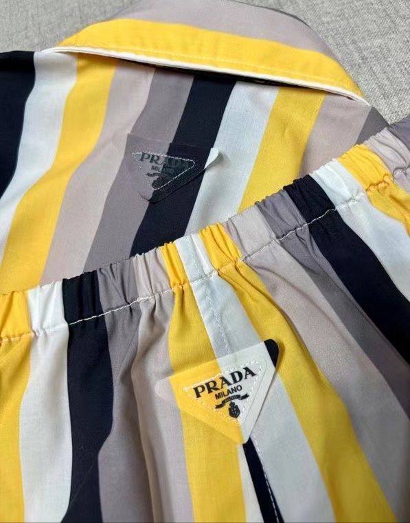 Костюм женский Prada LUX-119625 представляет собой стильный комплект в полоску, состоящий из рубашки с длинными рукавами и шорт. Желто-черная цветовая гамма придает образу яркость и современность. Такой костюм идеально подойдет для летнего сезона, сочетая в себе комфорт и элегантность.