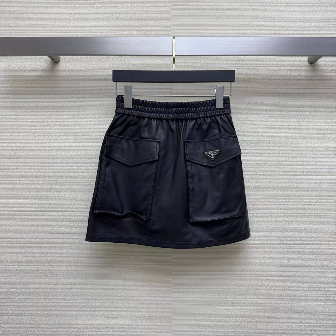 Кожаная юбка Prada LUX-94961 - это стильный предмет гардероба от известного бренда. Юбка выполнена в черном цвете, имеет текстуру кожи и отличается лаконичным дизайном. Идеальна для создания образов в различных стилях, от повседневного до вечернего.