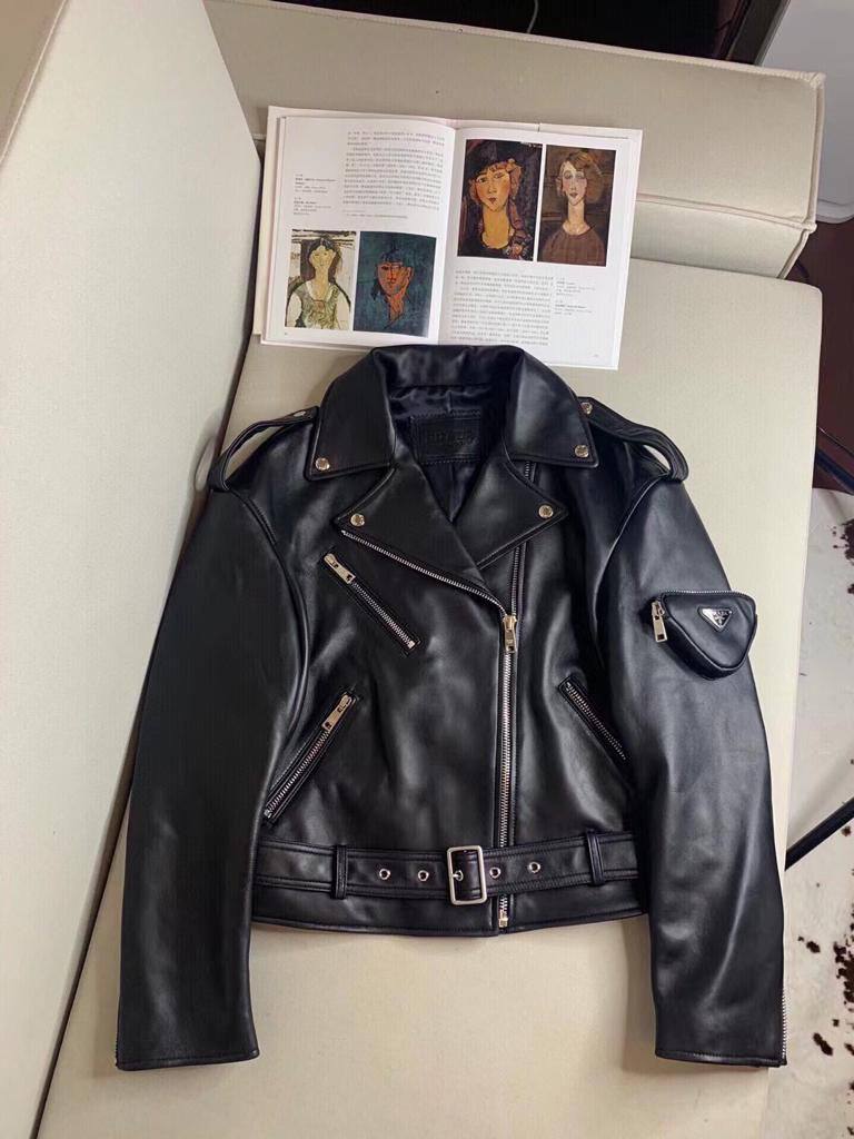 Prada куртка LUX-71690 представляет собой стильную кожаную куртку черного цвета в байкерском стиле. Куртка имеет классический крой с косой молнией, воротником и декоративными элементами. Этот предмет гардероба идеально подходит для создания модных и дерзких образов.