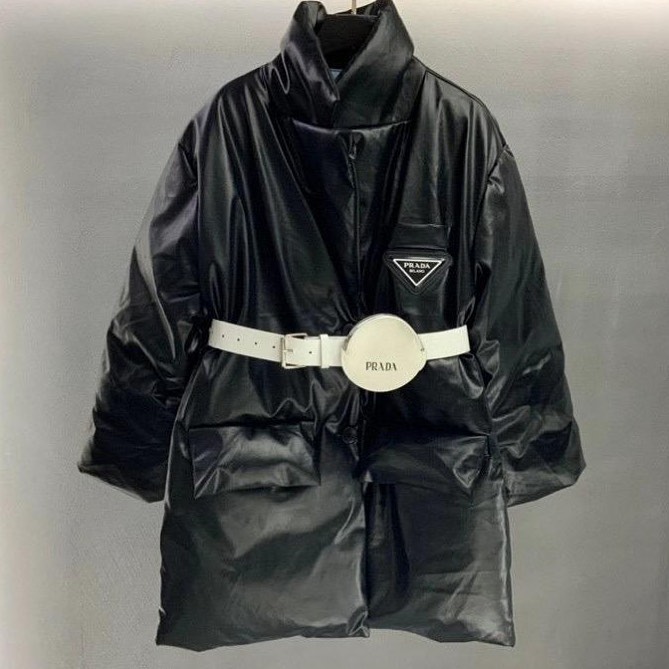 Женская куртка Prada LUX-37132 представляет собой стильное и современное решение для модниц. Данная модель выполнена в черном цвете, имеет объемный силуэт и акцентную белую поясок с брендовым логотипом, что придает ей особую элегантность. Дизайн куртки сочетает в себе практичность и роскошь, делая ее идеальным выбором для создания эффектных образов.