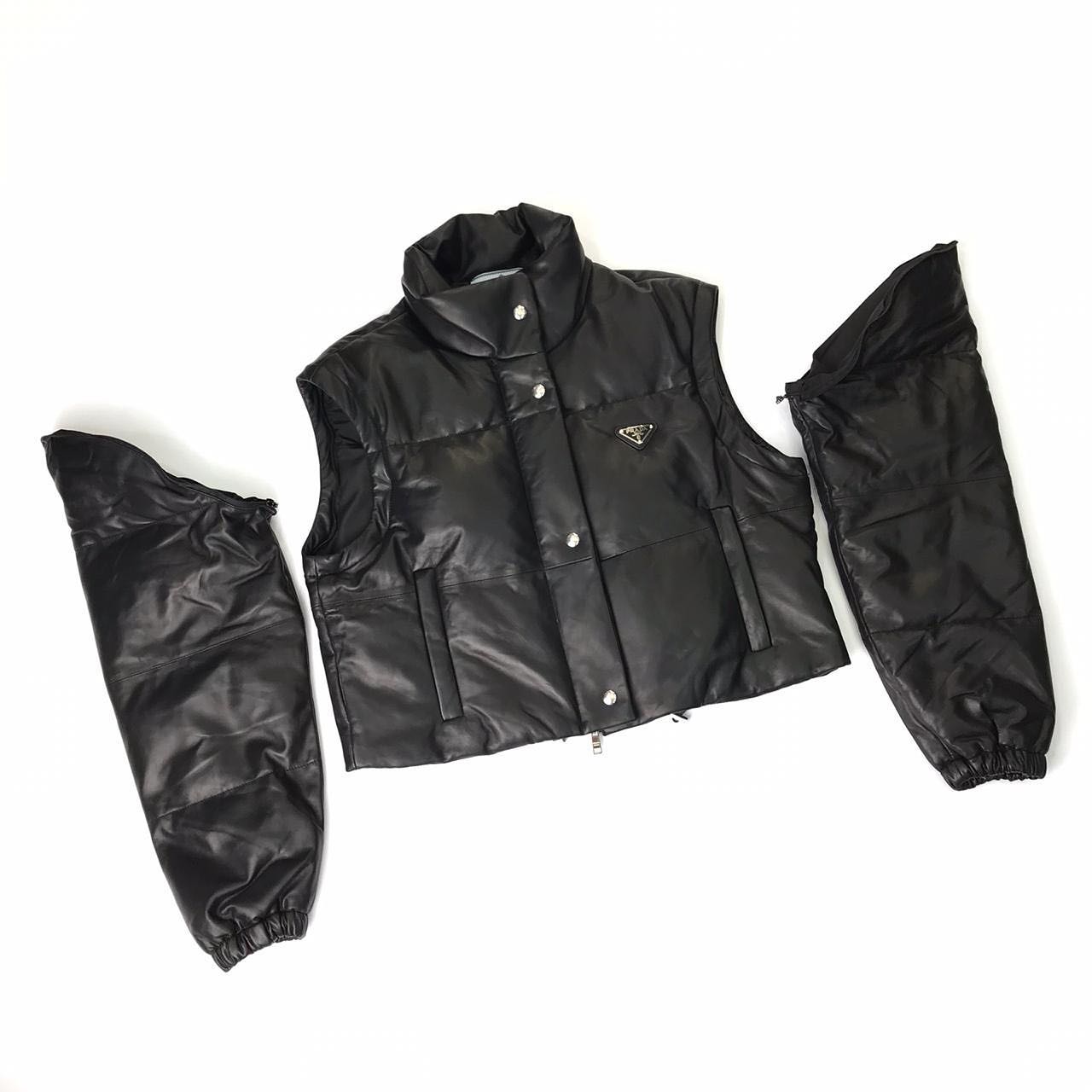 Женская куртка Prada LUX-39041 представляет собой стильный и современный элемент гардероба, выполненный в классическом черном цвете. Эта модель сочетает в себе элементы пуховика и жилета, дополненная съемными рукавами, что делает ее универсальной для различных погодных условий и стилизаций. Аккуратный крой и минималистичный дизайн подчеркивают элегантность бренда Prada.