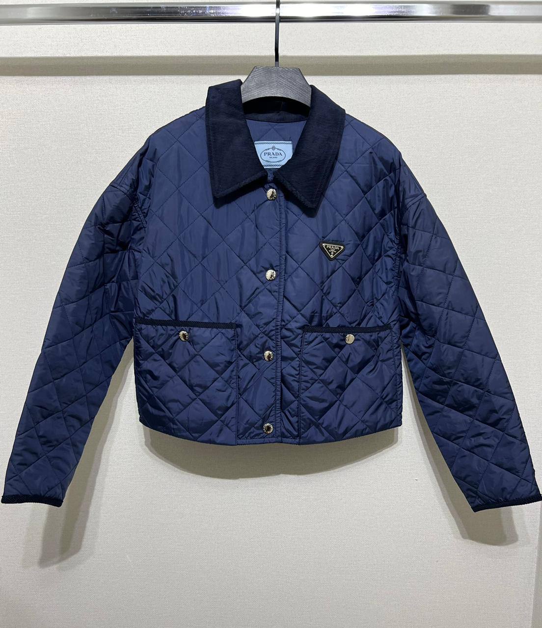 Куртка женская Prada LUX-110624 - это стильная стёганая куртка темно-синего цвета, классического дизайна. Куртка имеет короткий крой, воротник-стойку, застегивается на пуговицы. Она может стать отличным дополнением к повседневному гардеробу, подходит для разных образов.