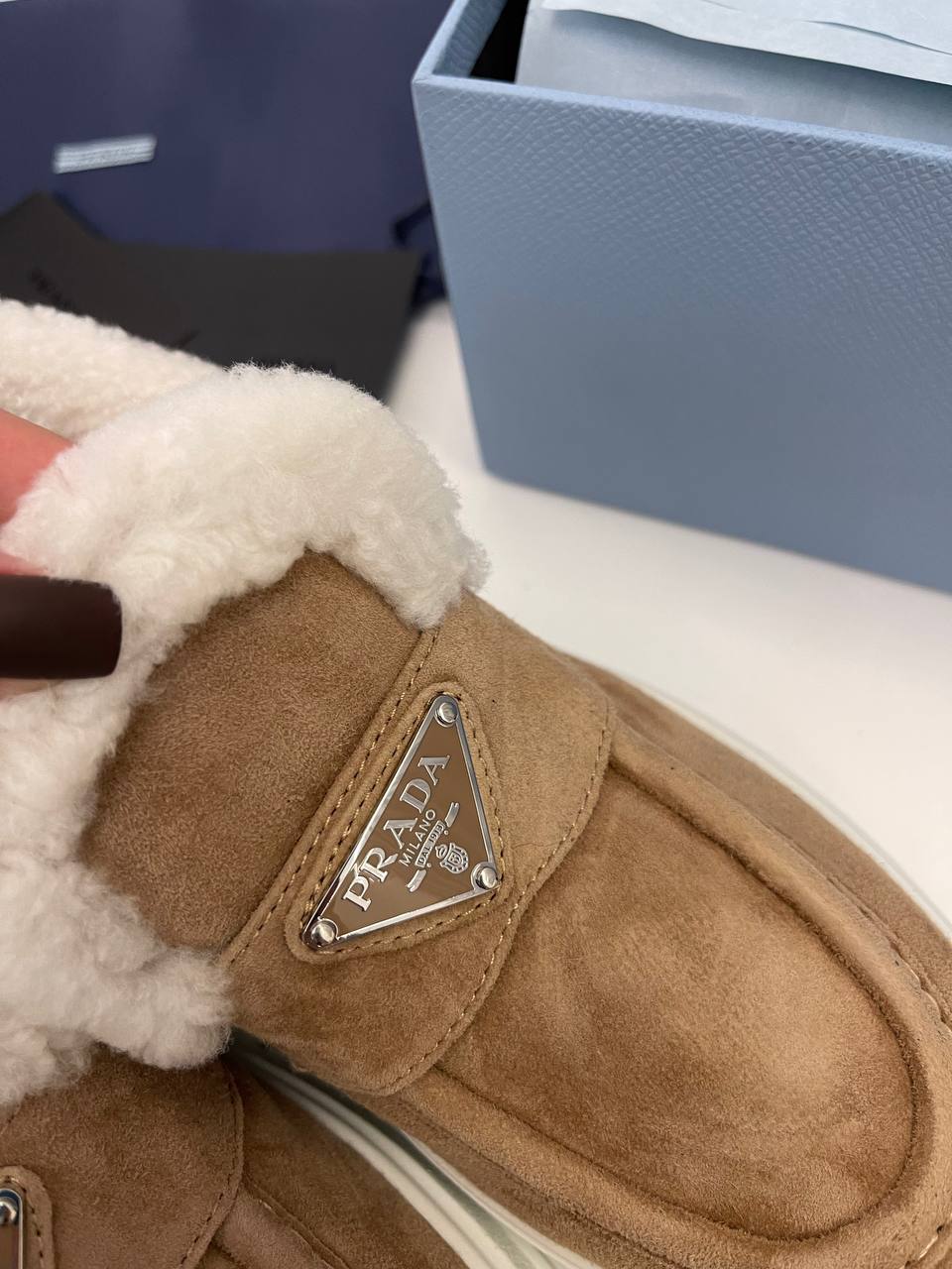 Лоферы Prada LUX-96841 – это стильные замшевые лоферы в повседневном стиле. Они выполнены в коричневом цвете, с белой подошвой и внутренним мехом. Данная модель сочетает в себе элегантность и комфорт, идеально подходя для создания модных образов в холодное время года.