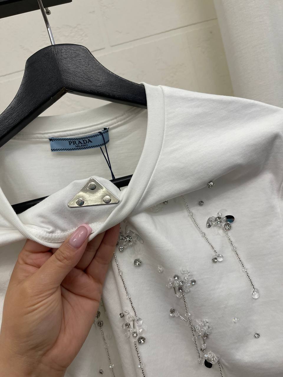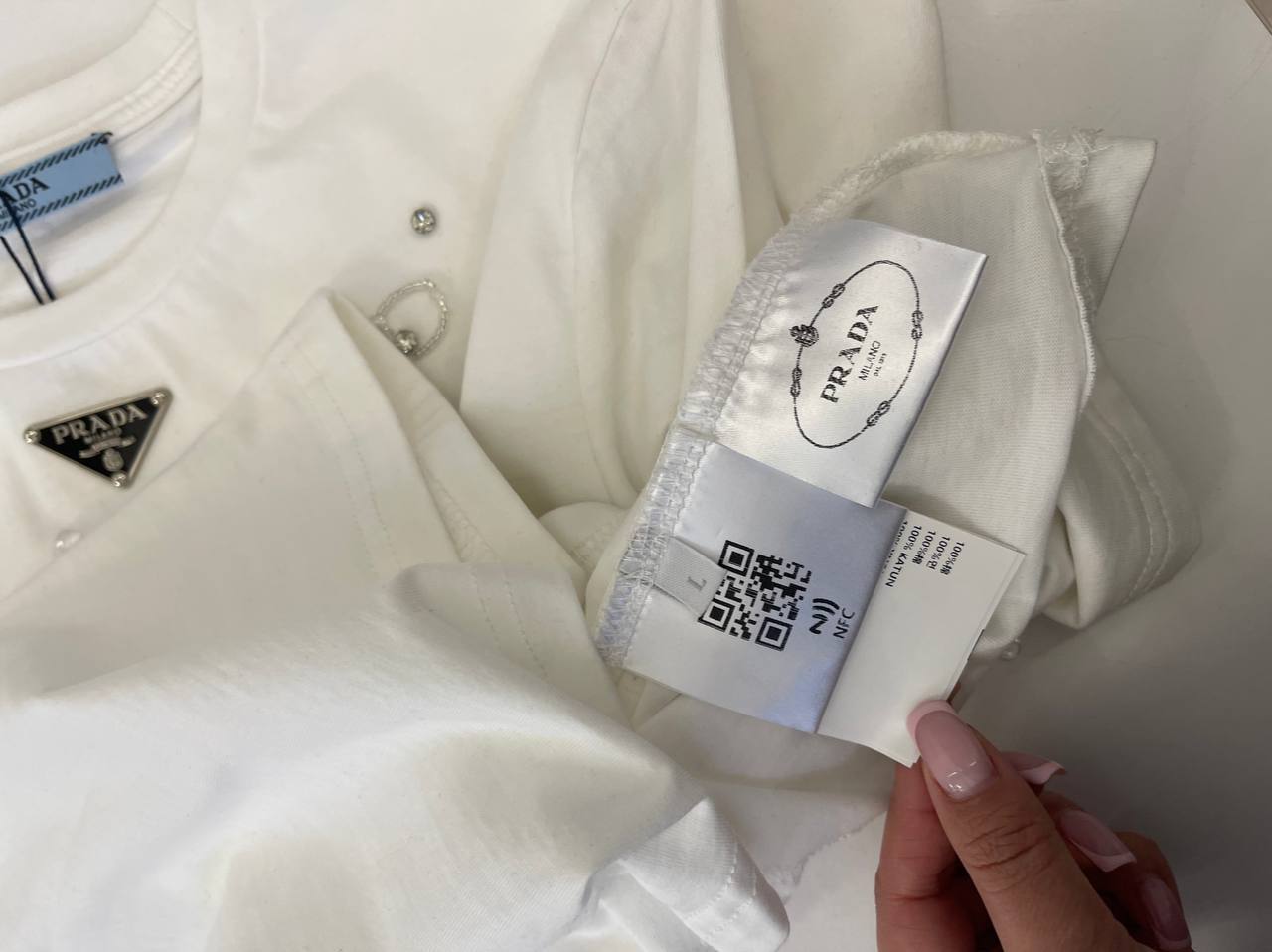 Лонгслив Prada LUX-105531 — это воплощение изысканности и стиля. Белый лонгслив декорирован кристаллами, которые добавляют ему роскоши и элегантности. Идеально подходит для создания утонченных образов.