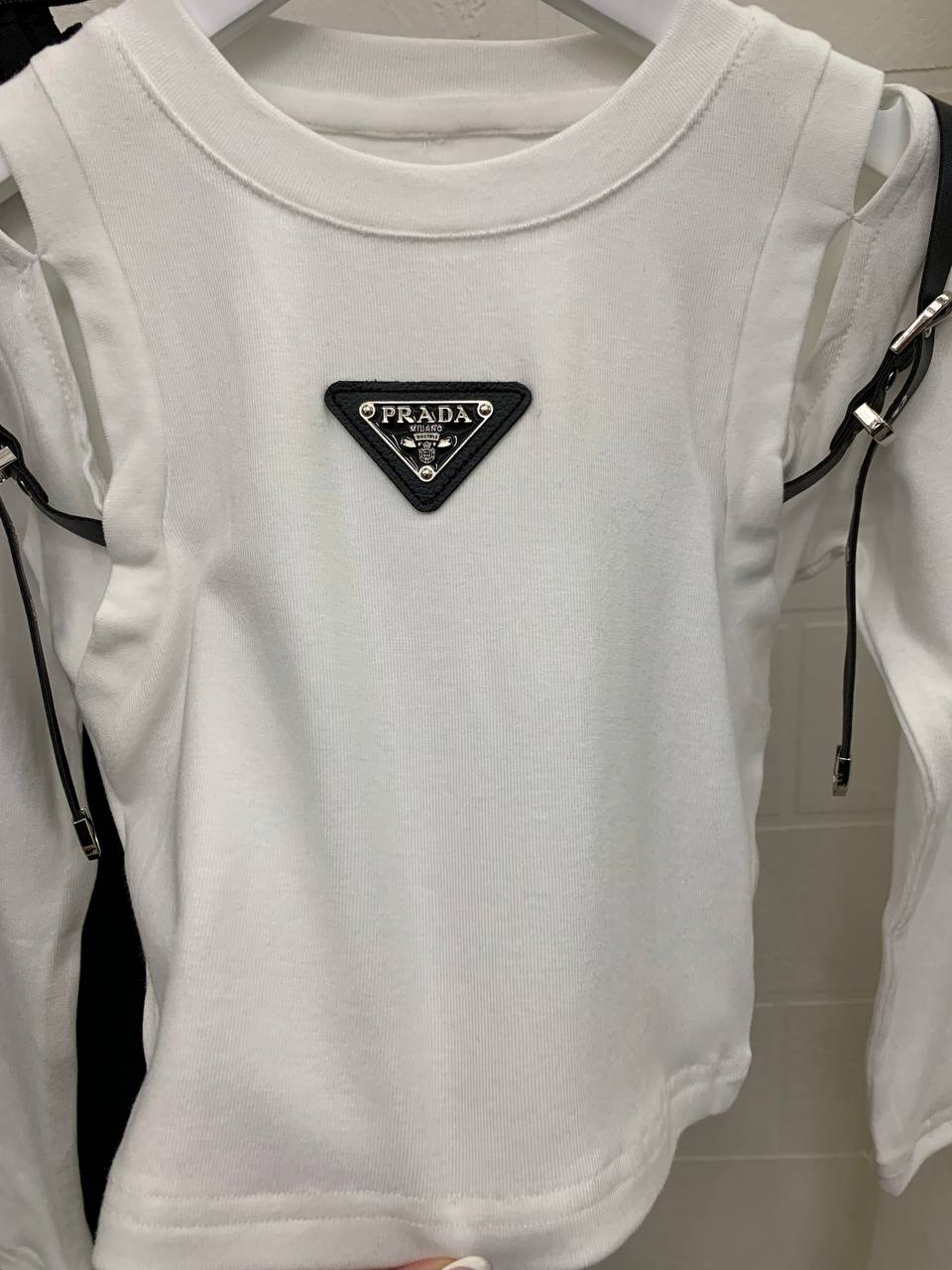 Лонгслив Prada LUX-101498 – это стильный элемент гардероба от известного бренда. Белый лонгслив с длинными рукавами и декоративными деталями создает современный и выразительный образ. Он отлично подойдет для создания как повседневных, так и более элегантных нарядов.