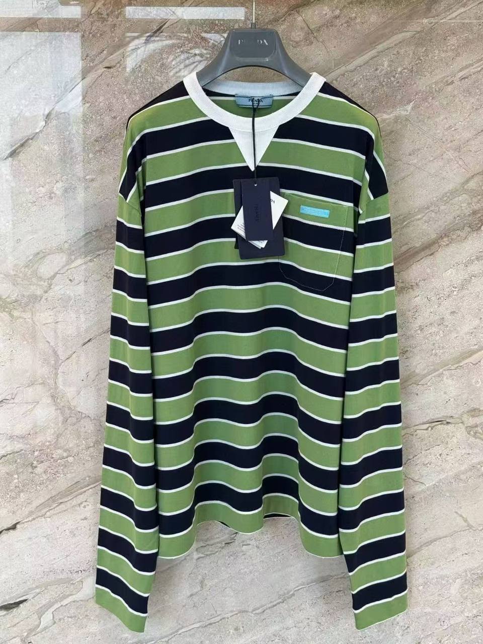 Лонгслив Prada LUX-131582 в полоску – стильный и комфортный выбор для повседневного гардероба. Этот лонгслив идеально подойдет для создания расслабленных, но модных образов.