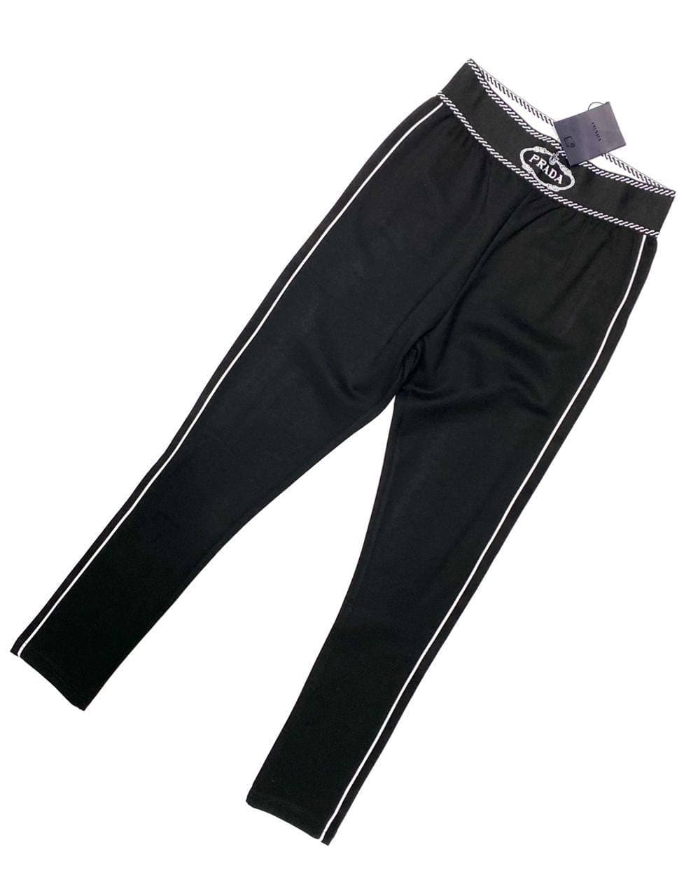 Эти черные лосины Prada LUX-63746 – идеальное сочетание спортивного стиля и высокой моды. Изделие выполнено в классическом черном цвете с контрастными белыми лампасами, подчеркивающими элегантность и динамичность образа. Эластичный пояс с узнаваемым логотипом Prada гарантирует комфортную посадку и придает лосинам особый шик.