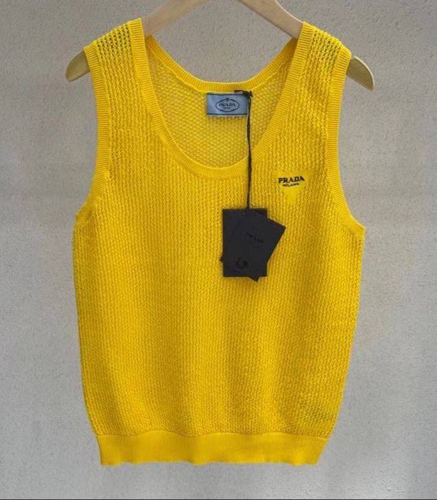 Яркая желтая майка Prada LUX-67551 — это стильный элемент гардероба, выполненный в классическом силуэте. Отличительная особенность – фактурная вязка, придающая изделию объем и выразительность. Майка идеально подойдет для создания непринужденных летних образов, а также может служить стильным дополнением к многослойным нарядам в прохладное время года.