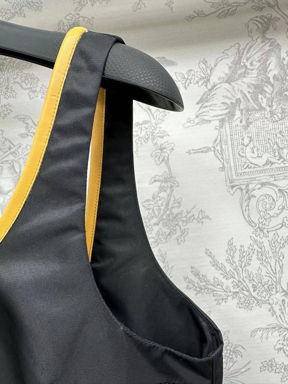 Майка Prada LUX-103671 — это воплощение изысканности и стиля. Чёрная майка с контрастной отделкой горловины и лямок в золотистом оттенке, украшена фирменным логотипом бренда. Идеально подходит для создания элегантных образов в повседневной жизни.