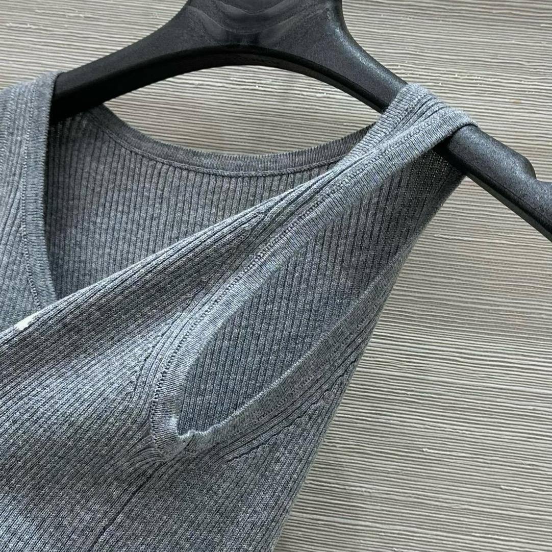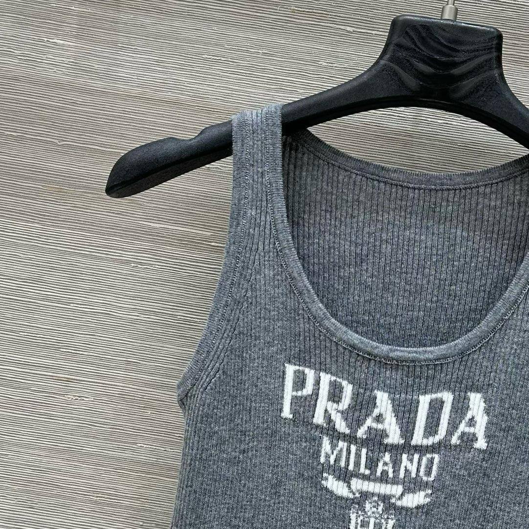 Майка Prada LUX-116376 — это стильный предмет гардероба, сочетающий в себе минималистичный дизайн и узнаваемый брендинг. Майка выполнена в классическом стиле, имеет серый цвет и тонкий рубчатый материал, который обеспечивает комфортную посадку. На груди расположен логотип Prada.