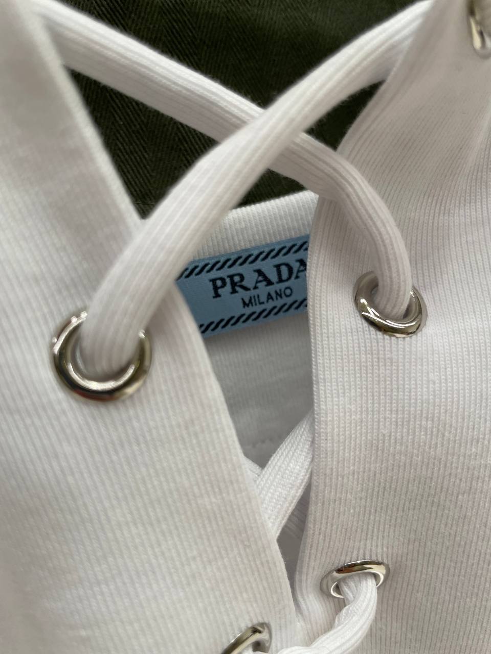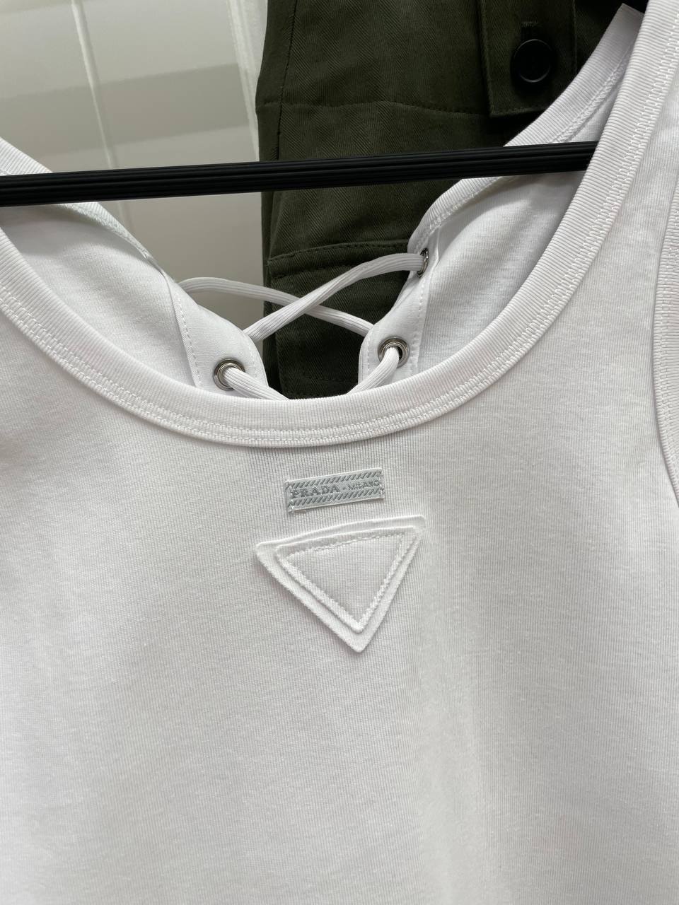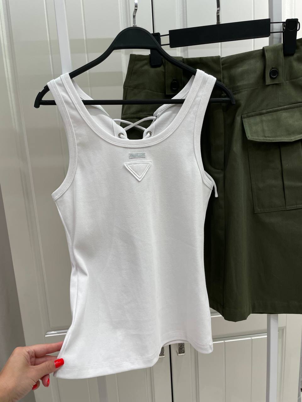 Майка Prada LUX-118733 – это стильный предмет гардероба, сочетающий в себе элегантность и комфорт. Белая майка с фирменным логотипом подчеркнет индивидуальность и станет отличным дополнением к любому образу. Идеально подходит для создания как повседневных, так и более нарядных луков.