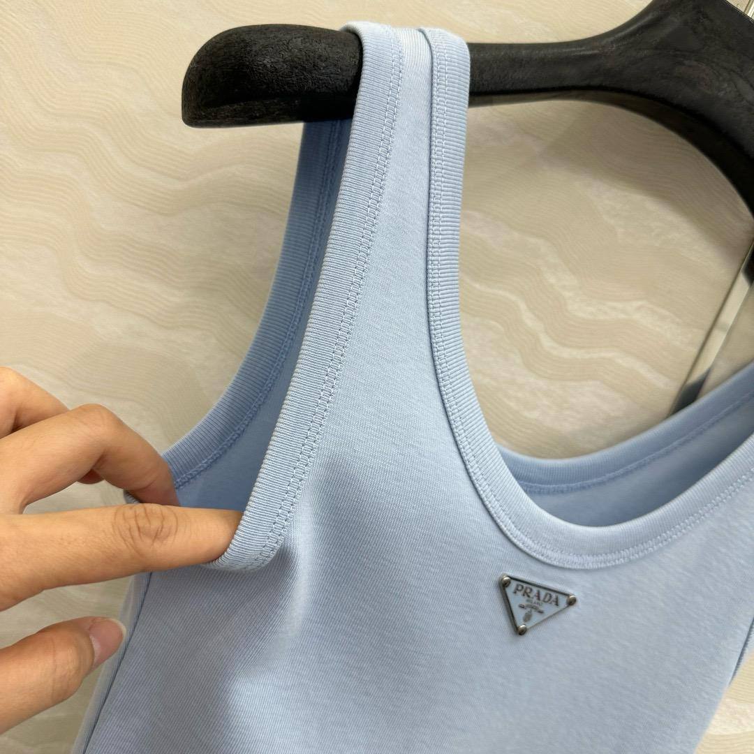 Майка Prada LUX-119846 — это воплощение элегантности и комфорта. Небесно-голубой цвет придает ей свежесть и легкость, делая идеальным выбором для создания повседневных образов. Эта майка выполнена в классическом стиле, подчеркивающем силуэт.