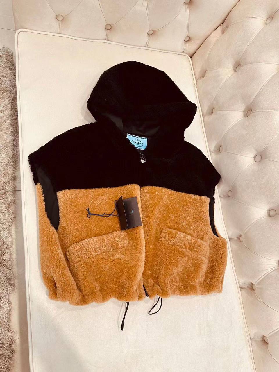 Меховой жилет Prada LUX-98867 — стильный предмет гардероба от известного бренда. Жилет выполнен в спортивном стиле с контрастной цветовой гаммой, имеет капюшон и объемные карманы. Он идеально подходит для создания модных и комфортных образов.