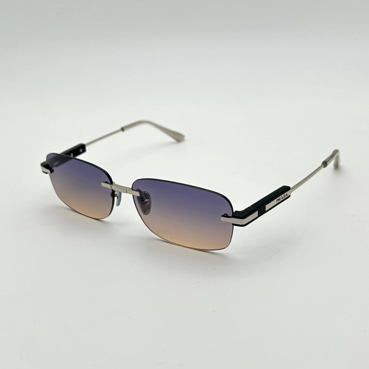 Очки Prada LUX-108686 - это стильный аксессуар, сочетающий в себе современный дизайн и высокое качество. Очки выполнены в безоправном стиле с градиентными линзами от фиолетового до оранжевого цвета. Тонкие металлические дужки и небольшие черные элементы делают их отличным дополнением к любому образу.