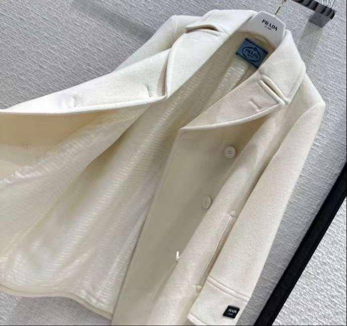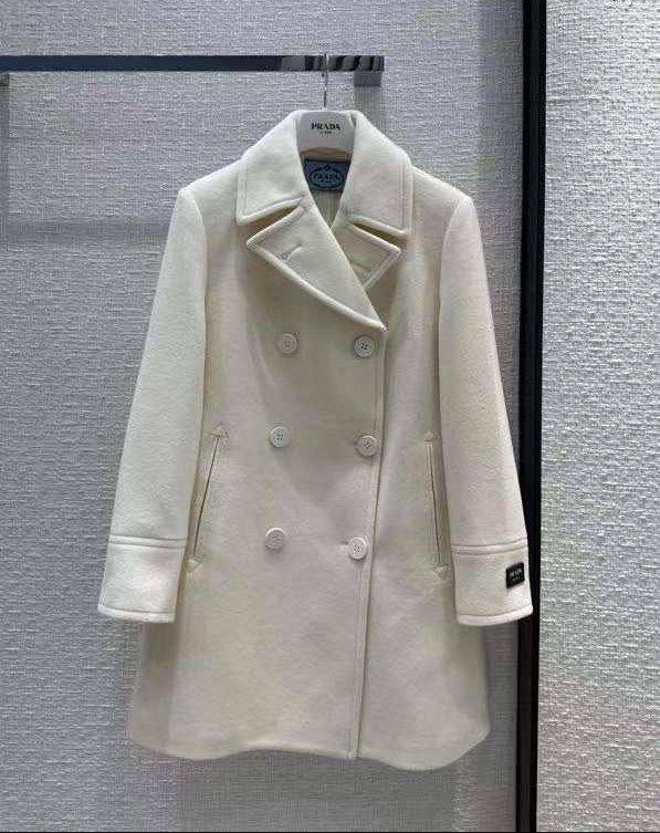 Пальто Prada LUX-98191 – это элегантное пальто, воплощающее стиль и утонченность бренда. Пальто кремового цвета, с классическим двубортным дизайном и безупречными линиями кроя, идеально подходит для создания изысканного образа.