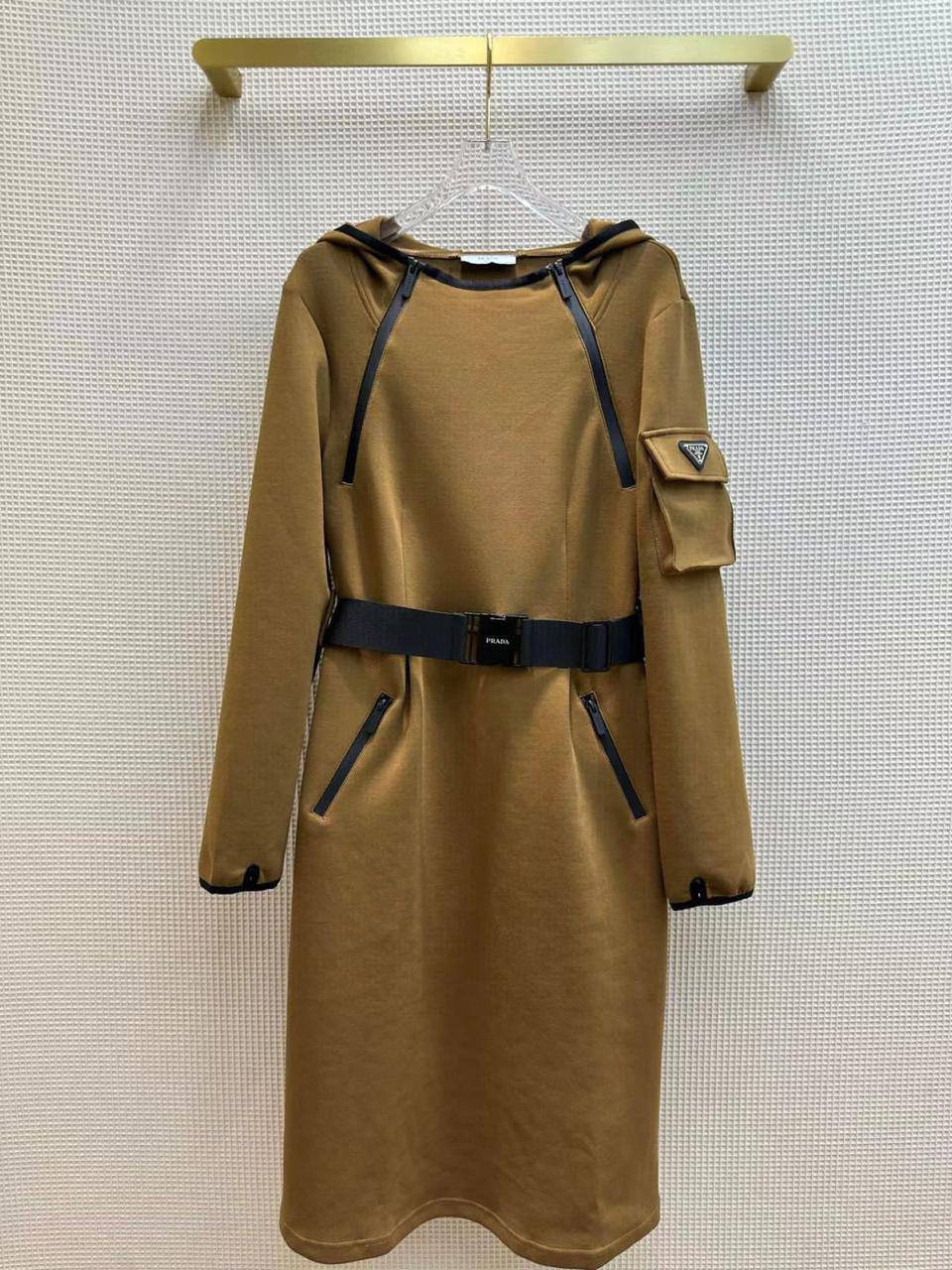 Платье Prada LUX-101098 представляет собой стильное и функциональное платье с капюшоном, выполненное в минималистичном дизайне. Платье выполнено в горчичном цвете с деталями черного цвета, что создает элегантный и современный образ. Идеально подойдет для повседневной носки, подчеркивая индивидуальность и стиль.