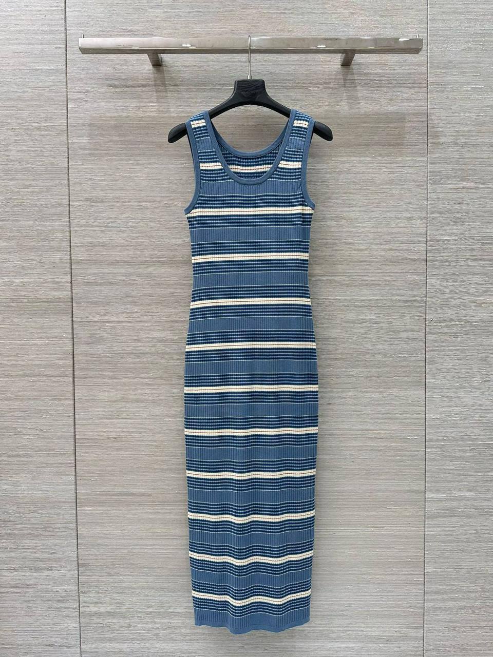 Платье Prada LUX-119990 - это стильное и элегантное платье в рубчик. Выполнено в синем цвете с горизонтальными полосами белого цвета, создавая интересный визуальный эффект. Отлично подойдет для создания повседневных образов.