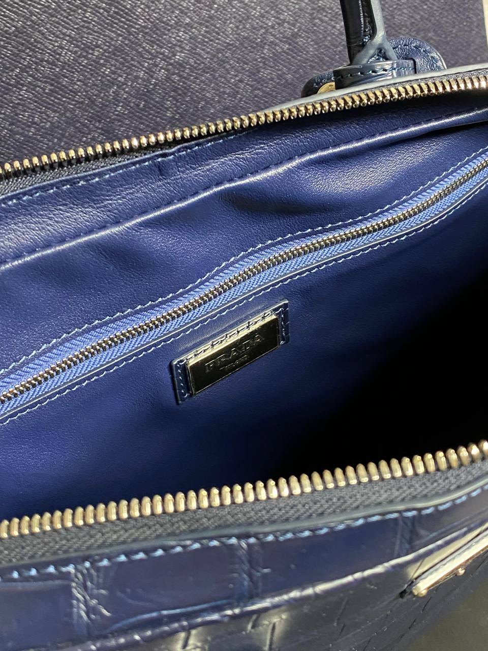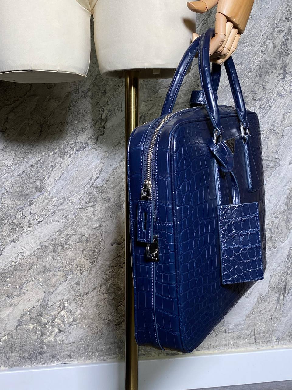 Портфель из натуральной кожи крокодила Prada LUX-97728 – это элегантный аксессуар для деловых людей. Темно-синий портфель выполнен из натуральной кожи крокодила, имеет текстурированную поверхность и прямоугольную форму. Этот портфель идеально подойдет для хранения документов, планшета и других необходимых вещей.