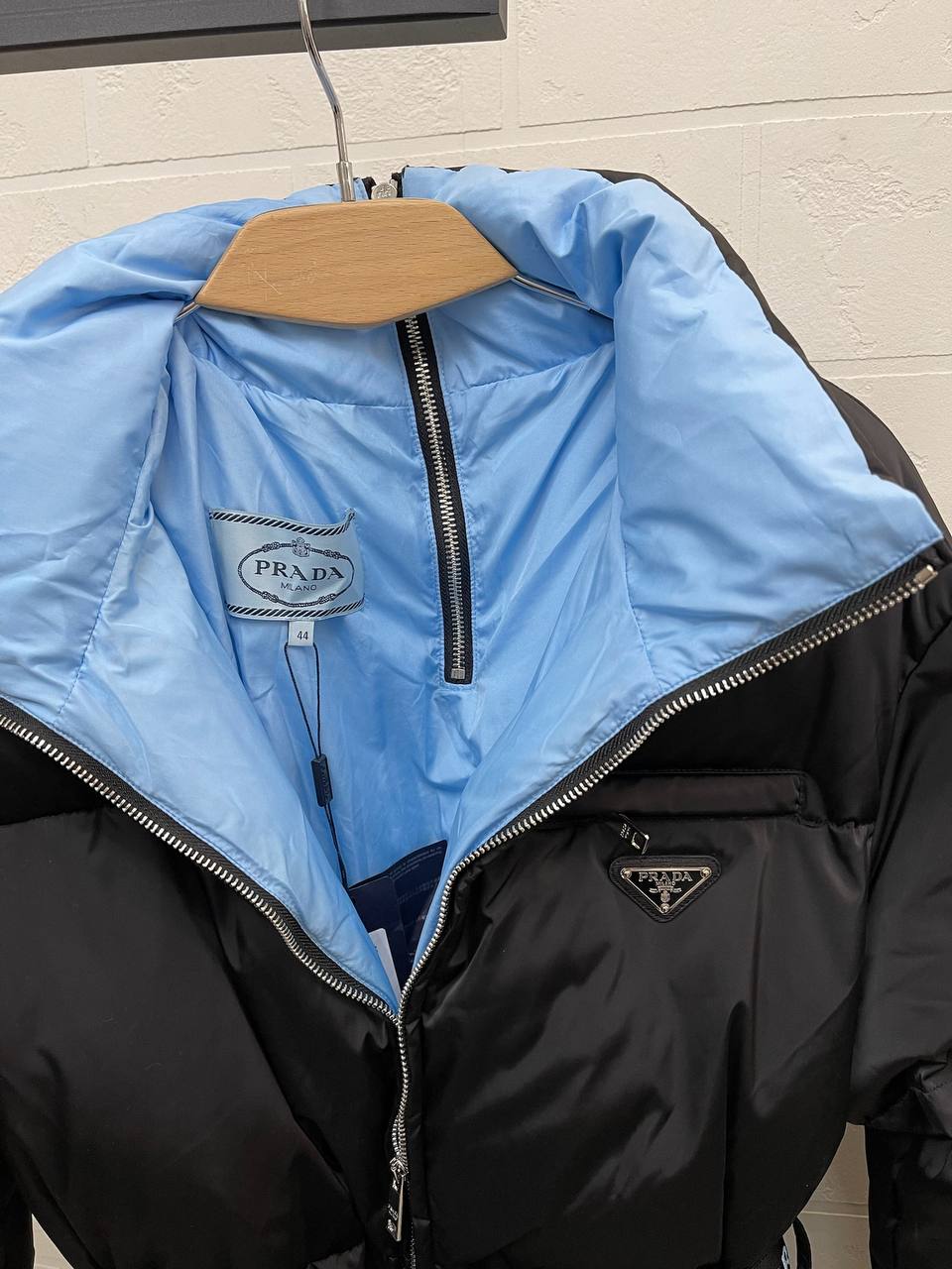 Пуховик Prada LUX-98529 — это воплощение элегантности и функциональности. Чёрный цвет пуховика в сочетании с голубым воротником, создаёт эффектный контраст. Идеальный выбор для создания стильного и тёплого образа в холодное время года.