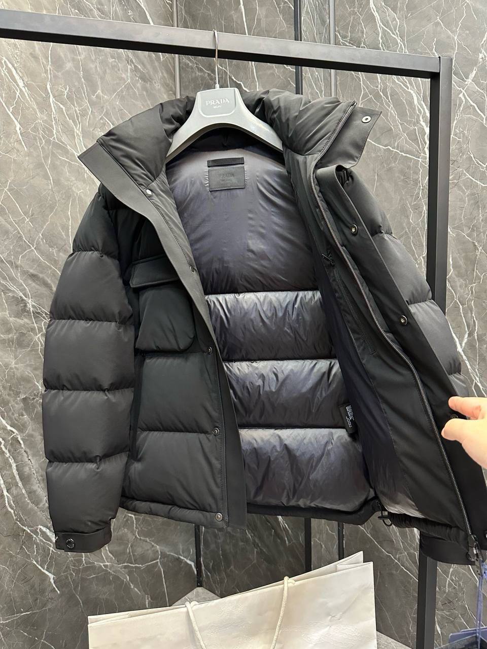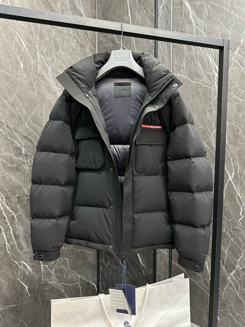 Пуховик Prada LUX-113721 – воплощение стиля и комфорта. Черный пуховик с капюшоном, дополненный двумя накладными карманами, идеально подходит для холодной погоды. Спортивный стиль пуховика делает его универсальным предметом гардероба.