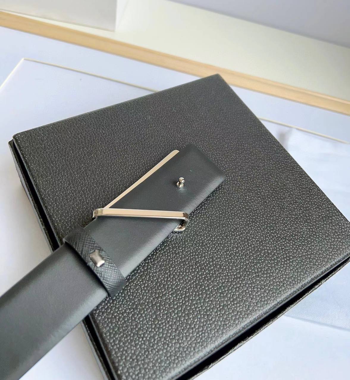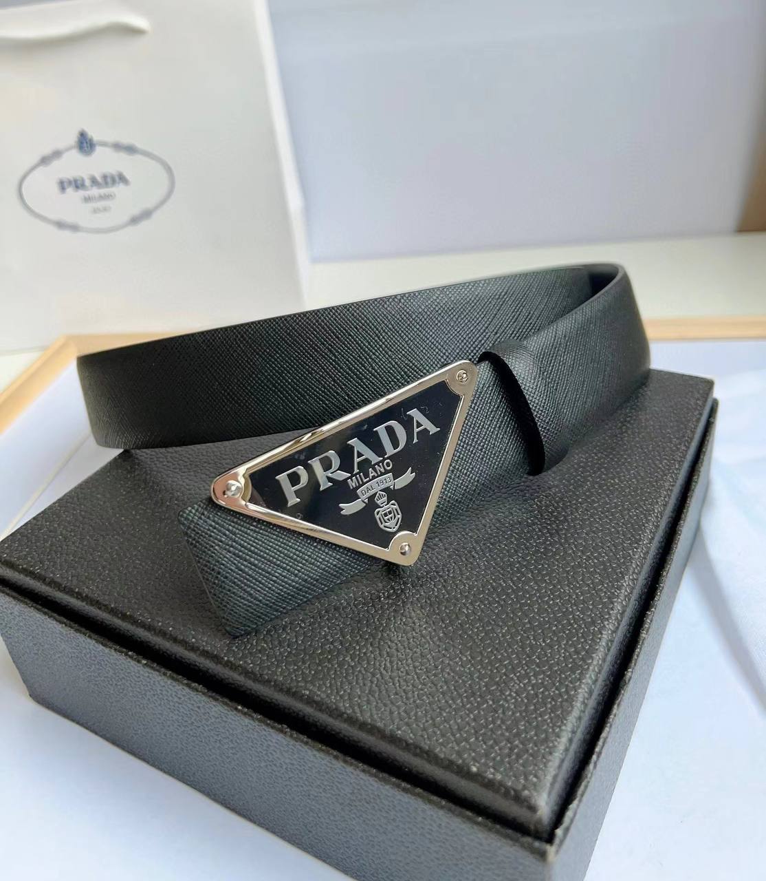 Ремень мужской Prada LUX-87591 - это стильный аксессуар, который подчеркнет ваш образ. Черный кожаный ремень с серебристой пряжкой в виде треугольника с логотипом бренда. Этот ремень станет отличным дополнением к любому наряду, придавая ему элегантность и современный вид.