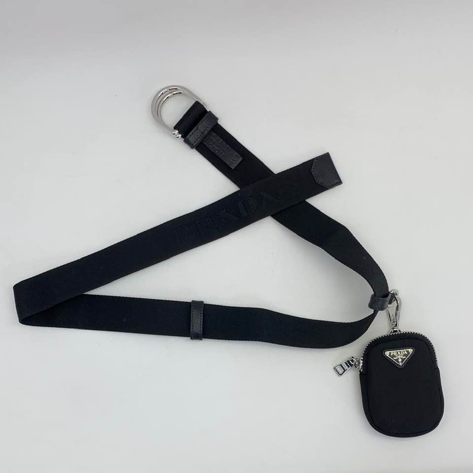 Ремень женский Prada LUX-41188 — это стильный и функциональный аксессуар, который идеально дополнит ваш образ. Черный текстильный ремень с серебристой пряжкой-кольцом и контрастной вышивкой логотипа бренда станет акцентом в любом наряде. В комплект входит компактная косметичка, прикрепленная к ремню, что придает ему дополнительную практичность.