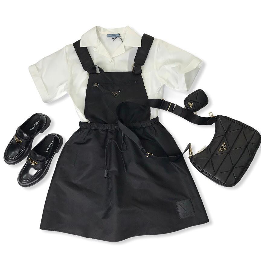 Prada рубашка LUX-43611 — это стильный и элегантный предмет одежды, который идеально подойдет для создания утонченных образов. Комбинация белой рубашки и черного сарафана на лямках создает модный и сдержанный образ, подчеркивающий изысканность бренда Prada.