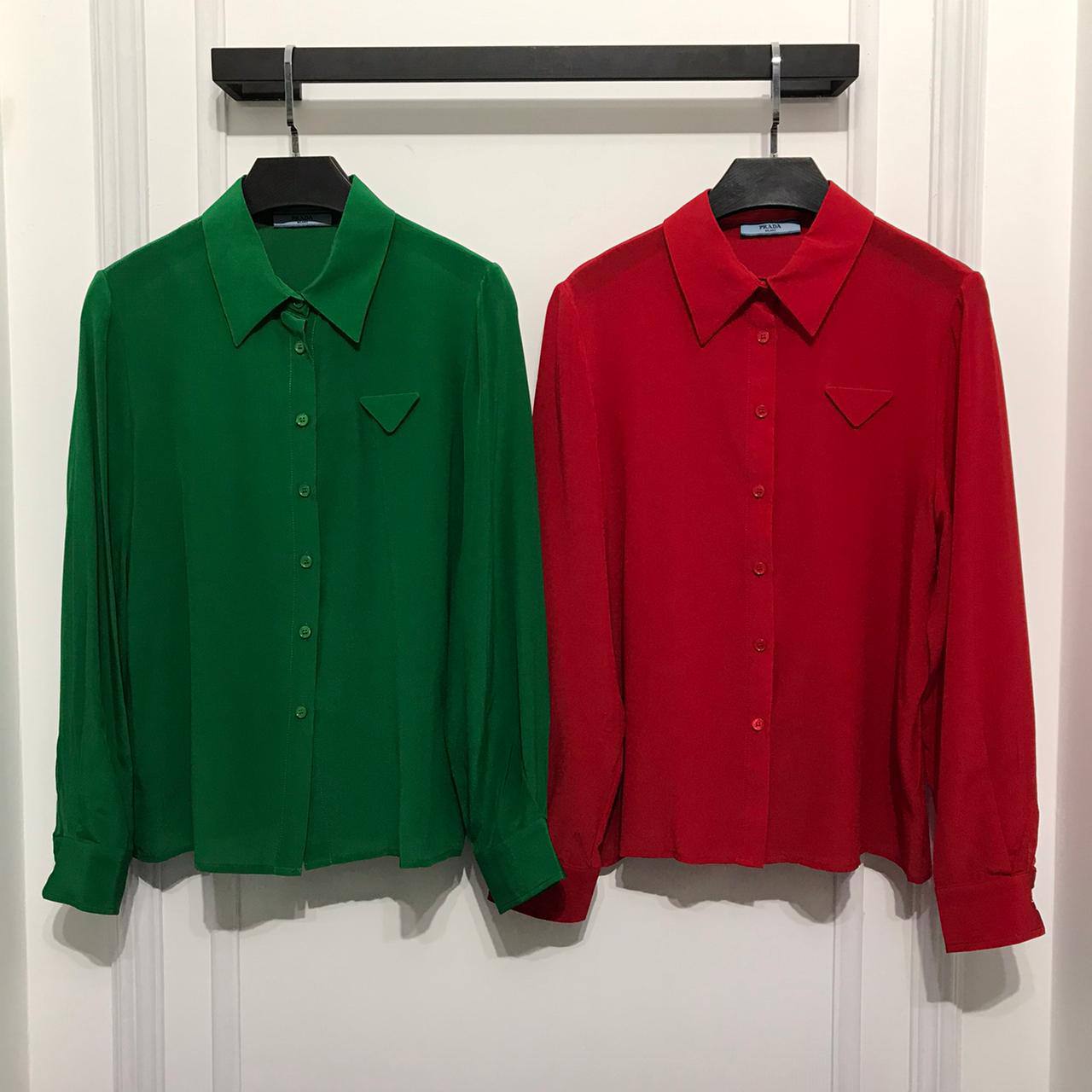 Prada рубашка LUX-67508 представляет собой элегантный предмет одежды, выполненный в классическом стиле. Эта рубашка, доступная в ярких красном и зеленом цветах, идеально подойдет для создания как деловых, так и более расслабленных образов. Ее дизайн отличается минималистичным, но изысканным декором в виде треугольного логотипа бренда.
