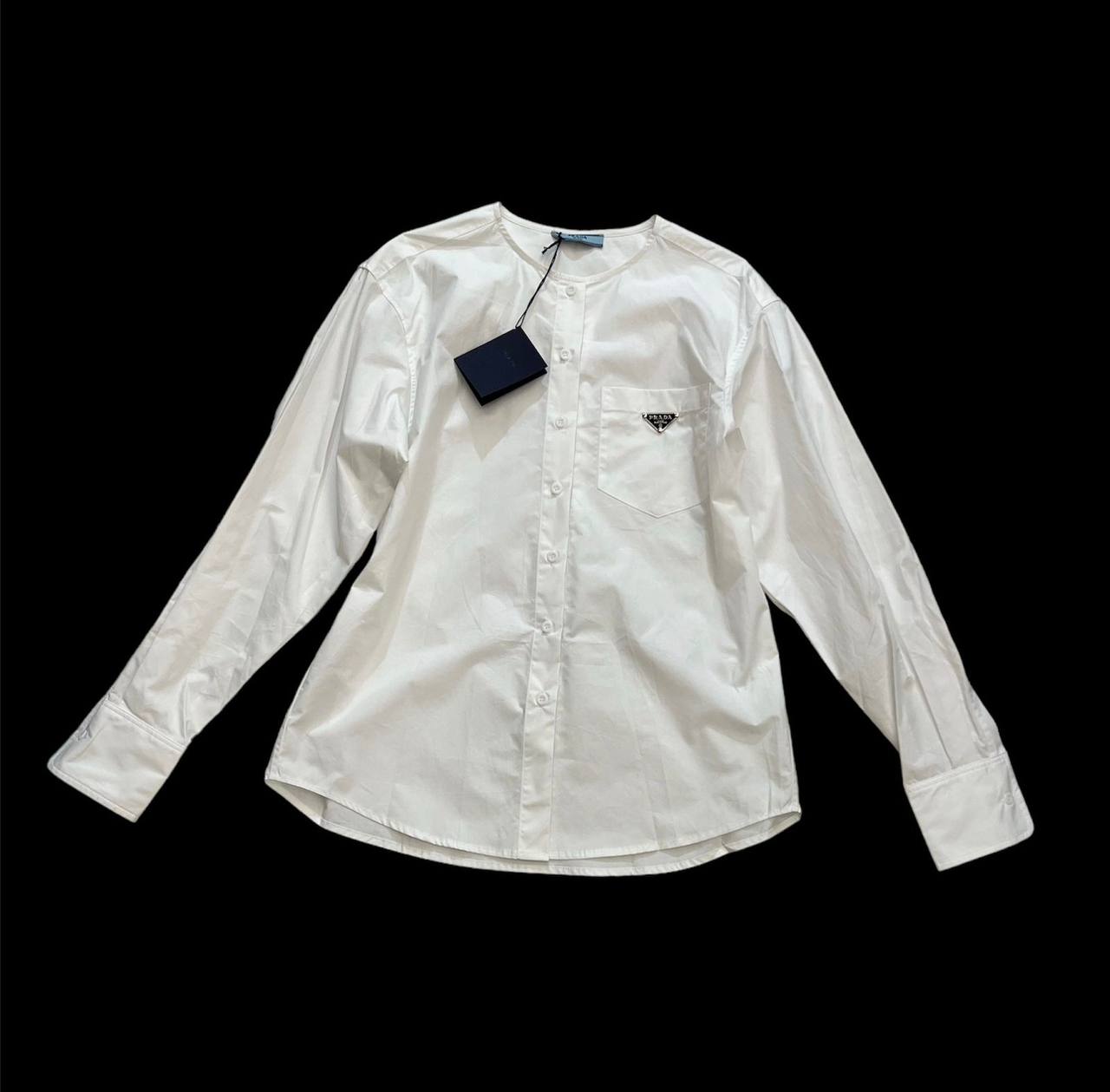 Рубашка Prada LUX-88417 – это воплощение элегантности и стиля от известного бренда. Белоснежная рубашка с воротником-стойкой, длинными рукавами и аккуратным карманом на груди. Отлично подходит для создания как повседневных, так и более формальных образов.