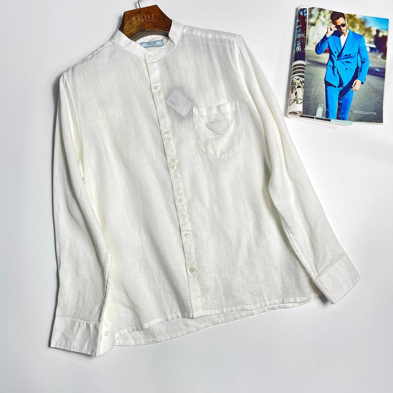 Рубашка Prada LUX-107444 — воплощение элегантности и минимализма. Эта рубашка от Prada выполнена в классическом стиле с воротником-стойкой и имеет прямой крой. Белый цвет и легкая текстура ткани делают ее идеальной для создания стильных образов.