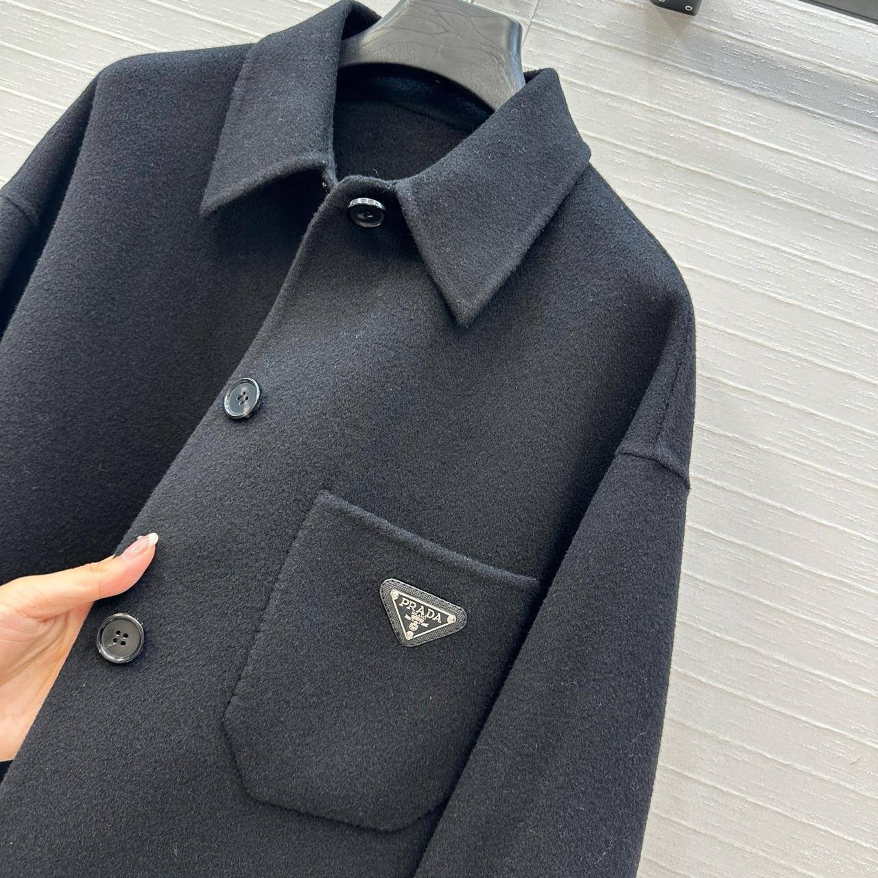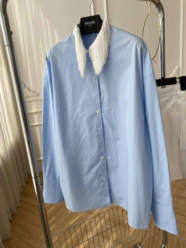 Это стильная рубашка Prada, которая сочетает в себе классический крой с современными деталями. Она отлично подойдет для создания как повседневных, так и более элегантных образов.