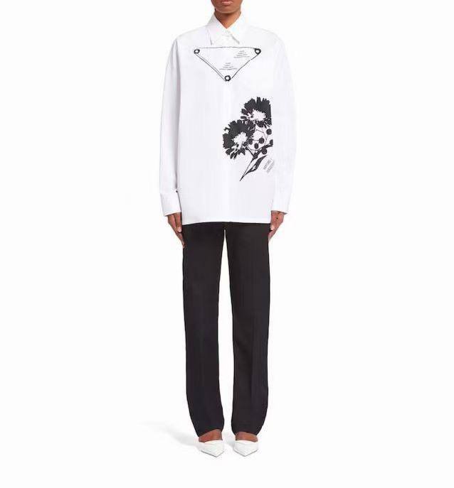 Эта белая рубашка Prada LUX-49178 представляет собой элегантное и современное дополнение к вашему гардеробу. Модель сочетает в себе классический крой с актуальным принтом, делая ее идеальным выбором для создания стильных образов.