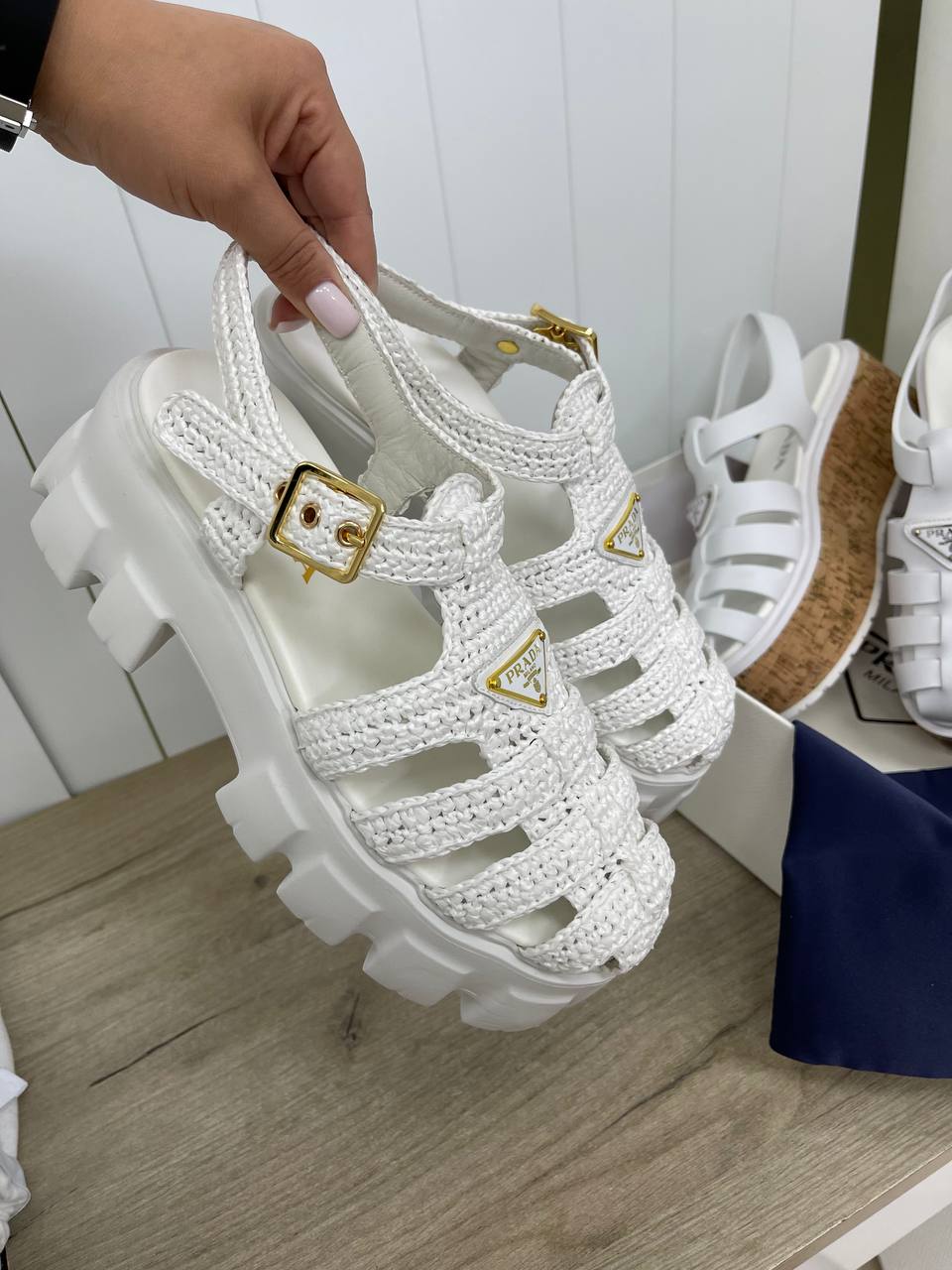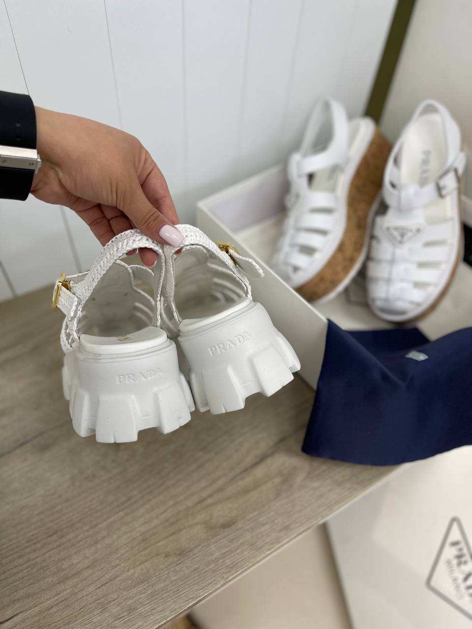 Сандалии Prada LUX-91044 представляют собой стильную летнюю обувь, которая сочетает в себе элегантность и комфорт. Белый цвет, плетеный верх и грубая подошва создают уникальный и запоминающийся образ. Эта обувь идеально подходит для повседневной носки, прогулок и встреч с друзьями.