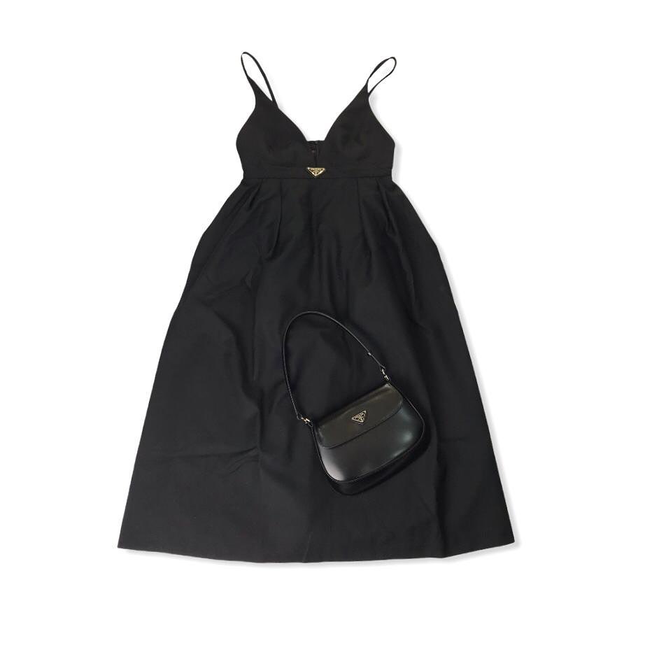 Этот черный сарафан Prada LUX-44194 — воплощение элегантности и минимализма. Изделие с изящным V-образным вырезом и тонкими бретелями идеально подчеркнет женственный силуэт. Свободная юбка миди с выразительными складками придает образу легкость и утонченность.