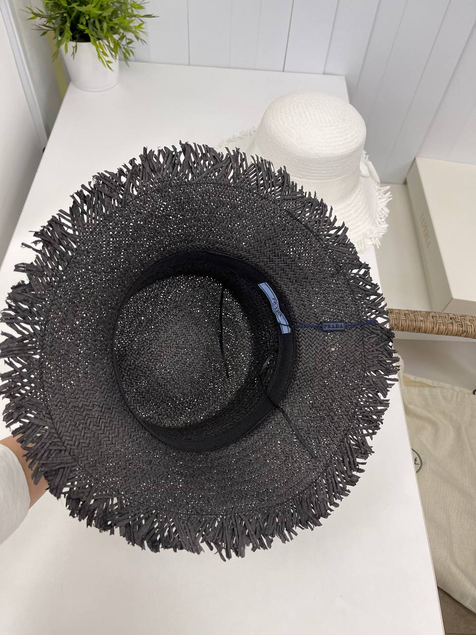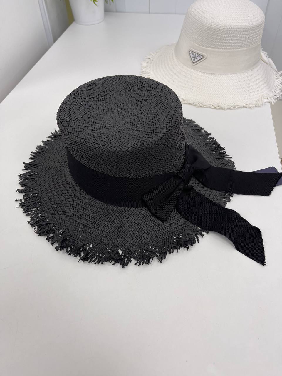 Шляпа Prada LUX-90296 представляет собой стильный аксессуар, который сочетает в себе элегантность и функциональность. Шляпа выполнена в классическом стиле с контрастным черным цветом и широкими полями. Она идеально подойдет для создания летних образов, защищая от солнца.