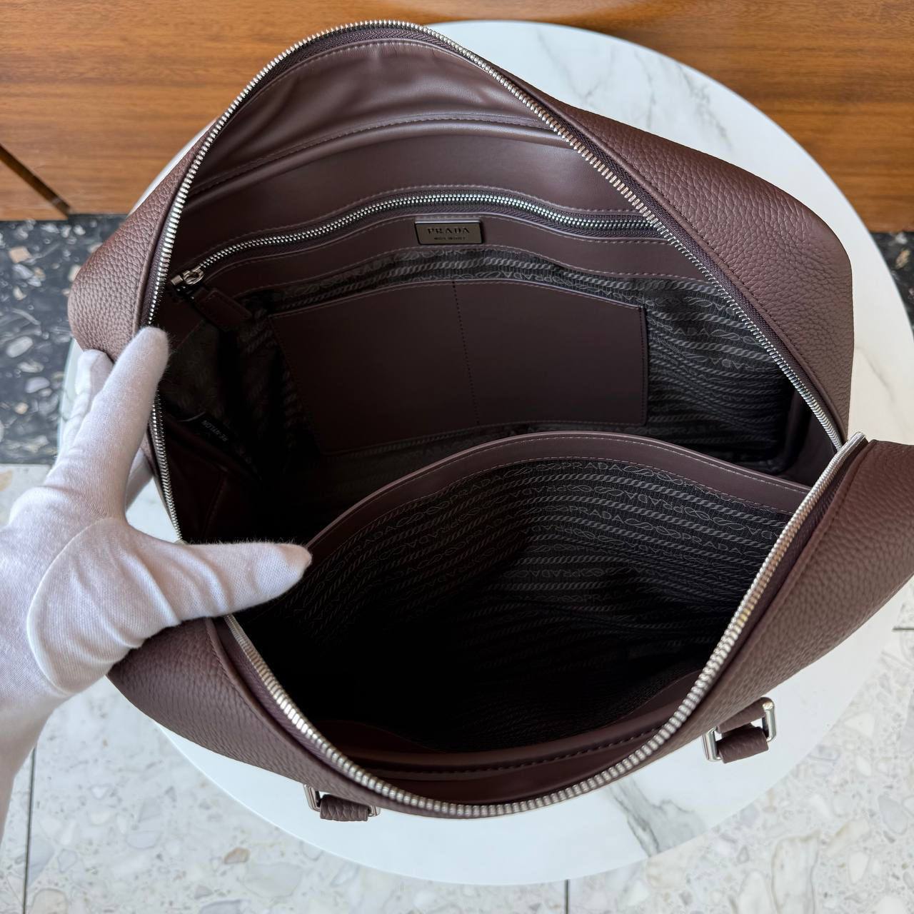 Представлена элегантная мужская сумка от Prada, модель LUX-121611, сочетающая в себе стиль и функциональность. Этот аксессуар идеально подойдет для деловых людей, ценящих качество и изысканность.