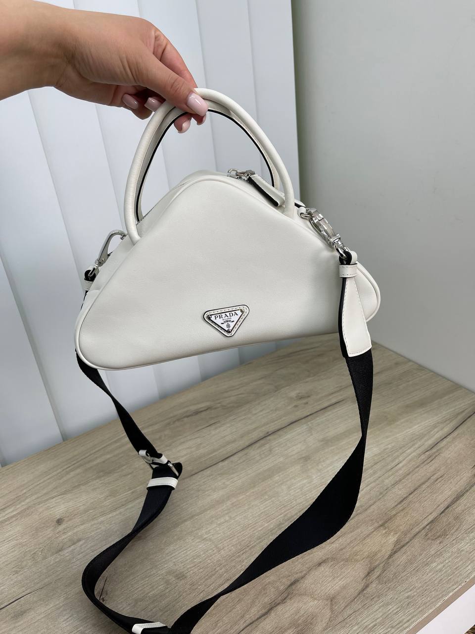 Эта элегантная женская сумка Prada LUX-66029 выполнена в современном и минималистичном дизайне. Ее треугольная форма и гладкая поверхность придают ей утонченный вид, идеально подходящий для создания стильных образов. Сумка дополнена удобными ручками и съемным ремнем, что делает ее универсальным аксессуаром на каждый день.